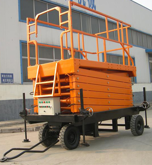 移動剪叉式升降平臺主要技術特點:臺面鋼板折彎、底架及剪叉結構山鋼定做高強度矩形管材; 標準冷彎槽做道軌,使用尼龍滑塊做導軌輪,接觸面大,升降平穩,晃動小;液壓油缸  內置防爆閥(防止油管斷裂,平臺失速下降),采用進口密封圈,經久耐用,不泄露;雙層鋼網高壓油管;升降機專用液壓泵站,加裝應急下降閥,平臺斷電可手動控制 下降,內置溢流閥,可防止上行運動時系統壓力過高,起到超載保護功能;充氣橡膠輪胎;電路電器、接觸器羅列連接,加裝熱過載保護,缺相保護等安全保護功能;電動上、下電動控制,控制按鈕盒加裝急停按鈕,以最大限度保障財產及人身安全,各操作部分使用24V安全控制電壓;軸銷圓鋼配做,調質處理;拋丸、噴砂 除銹處理,除去鋼結構構件表面的銹蝕及焊接飛濺,能使鋼構件表面產生一定程度的凹凸不平的效果,增大粉末的附著力;使用靜電粉末噴涂;涂層外觀質量優異,附著力及機械強度強,色澤亮度高,經久不褪色。
