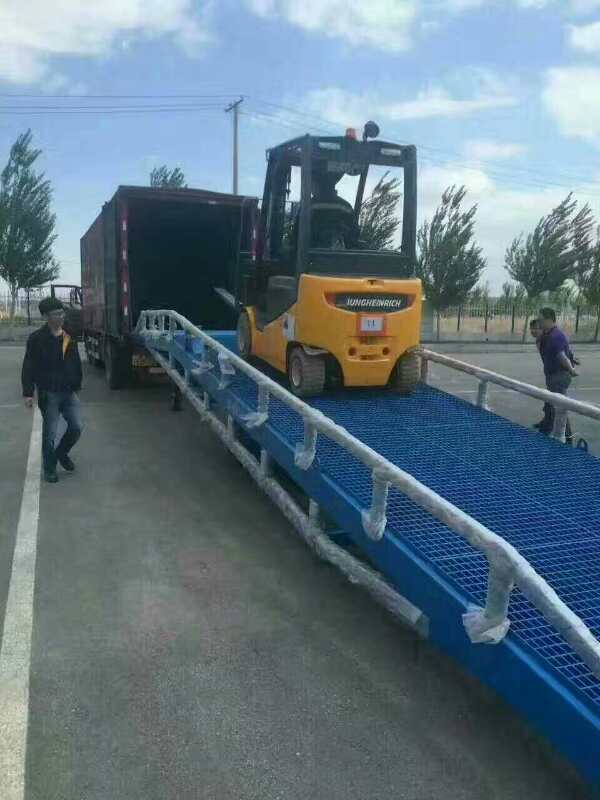 移動式液壓登車橋產(chǎn)品采用人工液壓動力,不需外接動力電源,只需單人操作,就可以實現(xiàn)貨物的安全快速裝卸,節(jié)省時間和人力資源。它可使企業(yè)減少大量勞動力,成倍提高裝卸作業(yè)效率,加快貨物流通速度,獲取更大經(jīng)濟效益。移動登車橋被廣泛應(yīng)用于無裝卸設(shè)備的貨臺及流動裝卸場所,是與叉車配合使用的貨物裝卸輔助設(shè)備。并可以根據(jù)不同的車型及裝車過程車廂的高度變化進行調(diào)節(jié)。廣泛應(yīng)用于大型化工工廠運輸備料、物流集散中心運輸貨物、港口碼頭上下集裝箱,移動式液壓登車橋廣泛的應(yīng)用各種物流或者工礦企業(yè)的裝卸貨物的工作當(dāng)中。