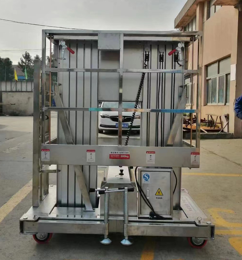 鋁合金式升降機整體采用高強度鋁型材精制而成,動力經過液壓泵站帶動鏈條傳動,能夠上下操作,令高空作業更方便快捷。